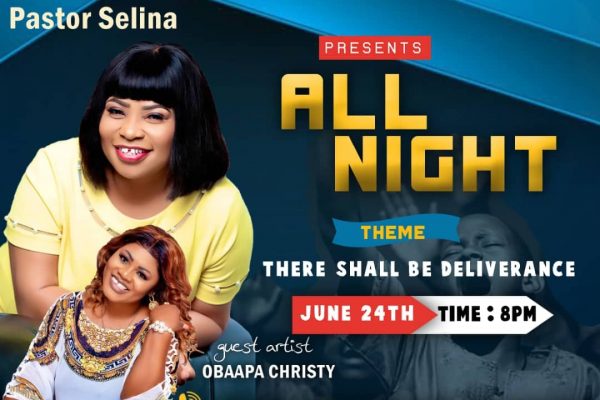 Continue readingJoin us at Faithway International Chapel auditorium on the 24th of JUNE for a prophetic All Night service. Come and experience the goodness of God through his Servant Pastor Selina